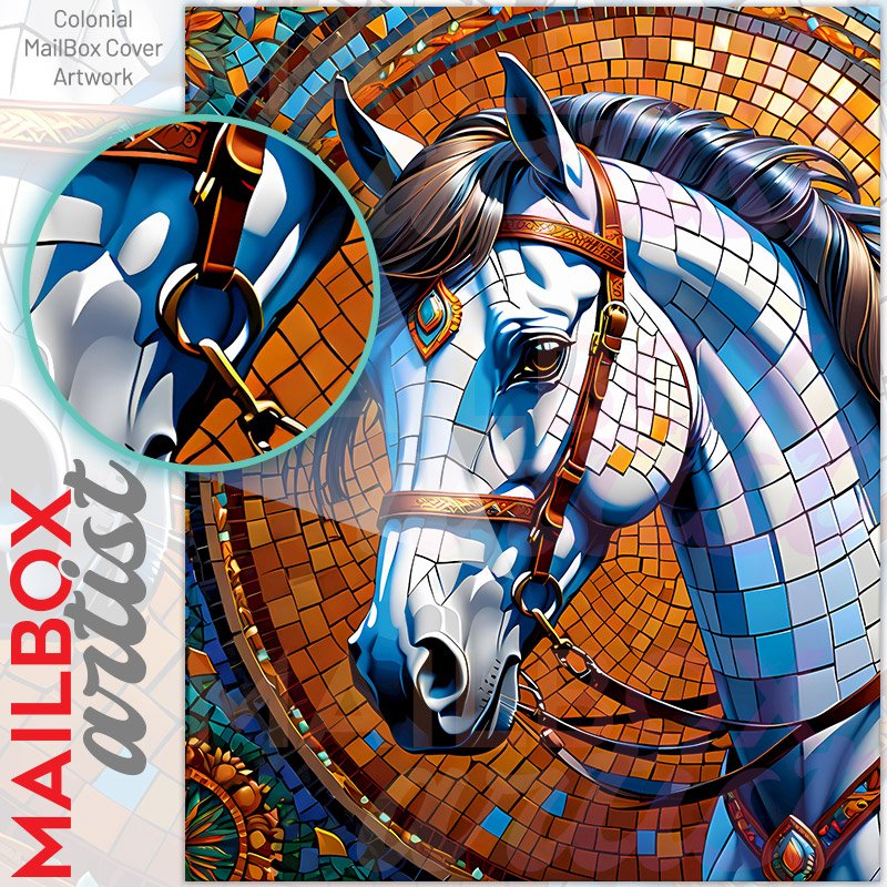 Beautiful Mosaic White Stallion Colonial Mailbox Cover