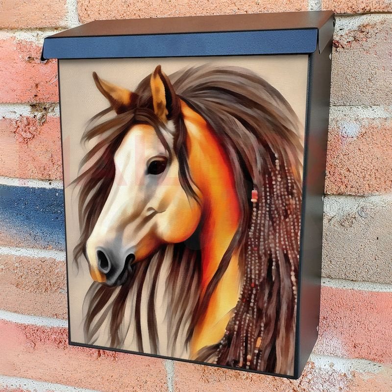 With this Beautiful Native Horse #8 colonial mailbox cover it’s pretty easy to convert your mailbox to a special and unique item. These covers require a flat surface, so they work with colonial mailboxes that do not have any embossed decoration or signs. In case your mailbox doesn’t work with these covers, you can purchase the preinstalled cover on a brand new mailbox as well. Also, you can create your custom colonial mailbox cover using you own pictures, adding your name, street number, etc.