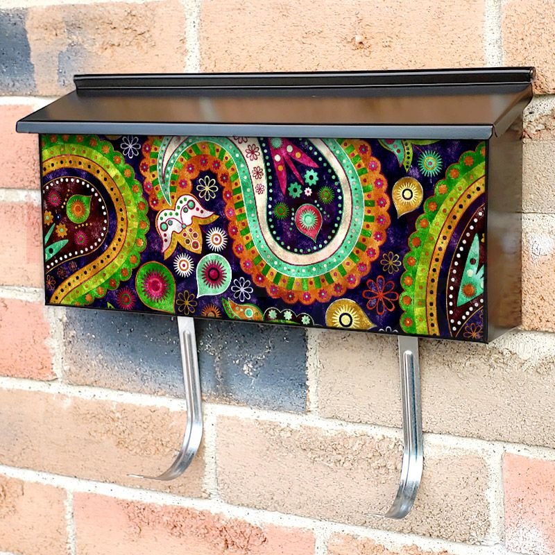 Applying your Beautiful Paisley Design #1 townhouse / ranch mailbox cover it’s pretty easy to convert your mailbox to a special and unique item. These covers require a flat surface, so they work with townhouse / ranch mailboxes that do not have any embossed decoration or signs. Magnetic mailbox covers work with steel boxes, for aluminum and plastic boxes we offer the self-adhesive vinyl covers. In case your mailbox doesn’t work with these covers, you can purchase the preinstalled cover on a brand new mailbox as well. Also, you can create your custom townhouse / ranch mailbox cover using you own pictures, adding your name, street number, etc.