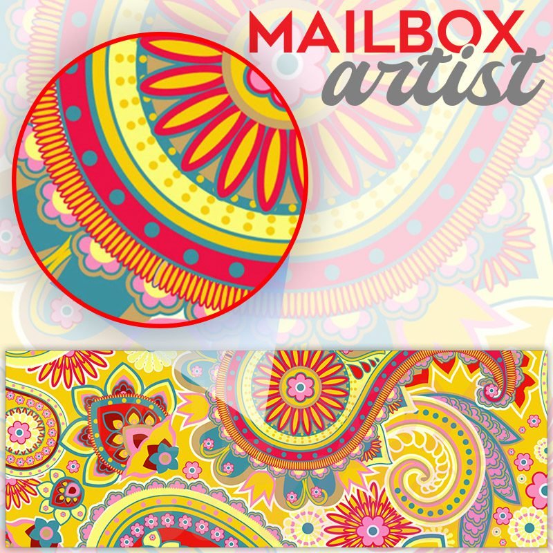 Applying your Beautiful Paisley Design #5 townhouse / ranch mailbox cover it’s pretty easy to convert your mailbox to a special and unique item. These covers require a flat surface, so they work with townhouse / ranch mailboxes that do not have any embossed decoration or signs. Magnetic mailbox covers work with steel boxes, for aluminum and plastic boxes we offer the self-adhesive vinyl covers. In case your mailbox doesn’t work with these covers, you can purchase the preinstalled cover on a brand new mailbox as well. Also, you can create your custom townhouse / ranch mailbox cover using you own pictures, adding your name, street number, etc.