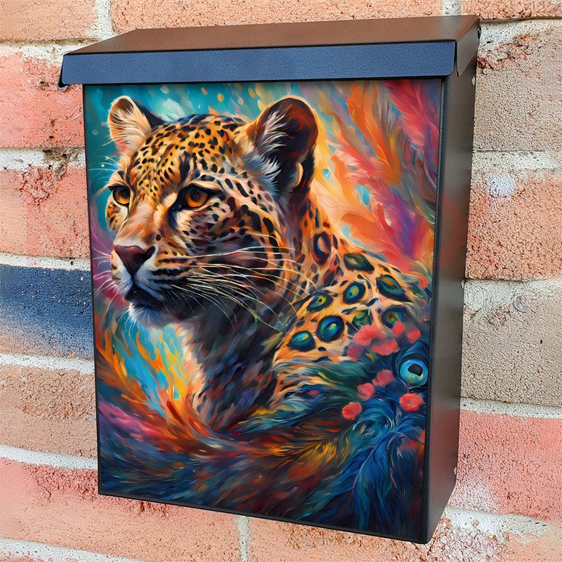 This Beautiful Peacock Leopard mailbox design was created by Krisztina Soos