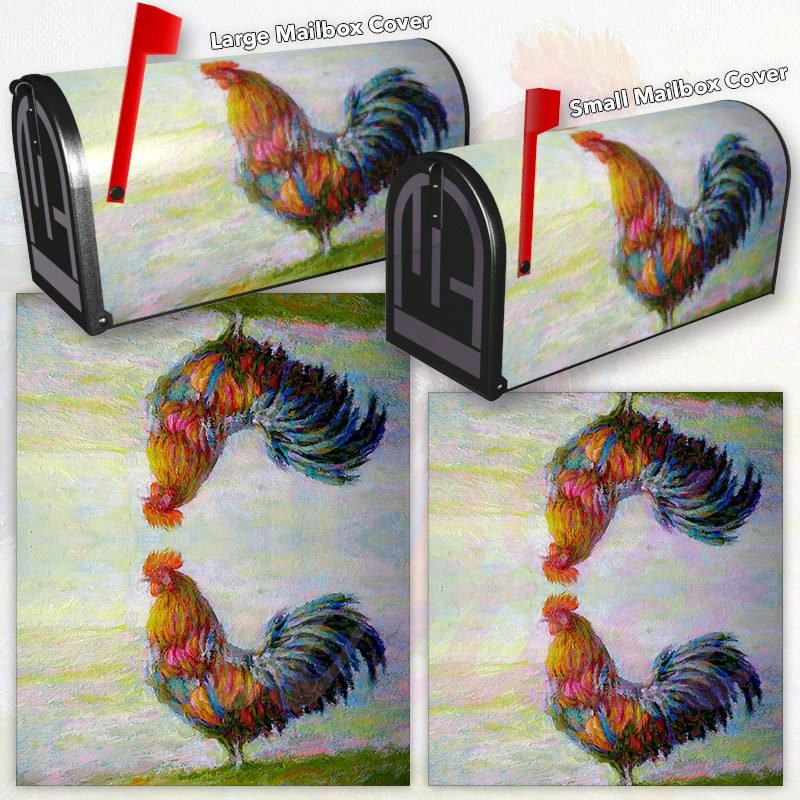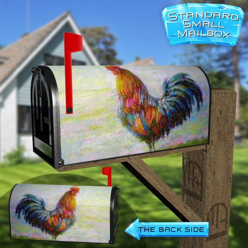 Dressing up your rural farm mailbox with the Beautiful Rainbow Rooster mailbox cover is an easy way to convert it into a unique and special item. These covers require a smooth surface, so they are compatible with rural farm mailboxes that do not have any embossed decorations or signs. Magnetic mailbox covers work with steel boxes only, while self-adhesive vinyl covers are available for aluminum, plastic and steel boxes. If your mailbox is not compatible with these covers, you can purchase a brand new mailbox with a preinstalled cover. Additionally, you have the option to create a custom rural farm mailbox cover with your own pictures, name, street number, etc.