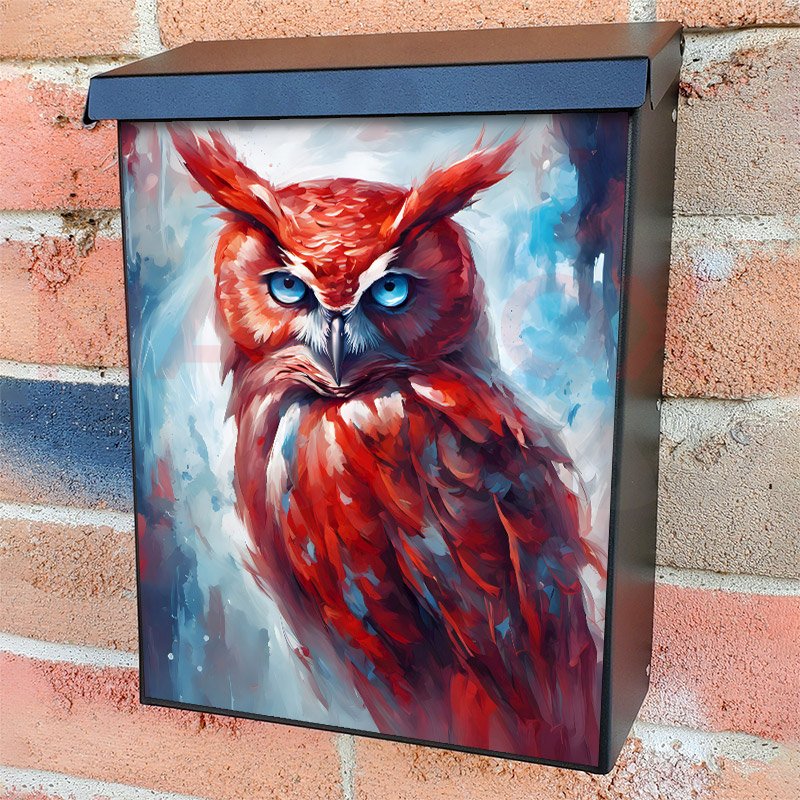 With this Beautiful Red Owl colonial mailbox cover it’s pretty easy to convert your mailbox to a special and unique item. These covers require a flat surface, so they work with colonial mailboxes that do not have any embossed decoration or signs. Magnetic mailbox covers work with steel colonial boxes only, while self-adhesive vinyl covers are available for aluminum, plastic and steel boxes. We also offer both self-adhesive and magnetic covers with regular opaque white vinyl or reflective vinyl, which works similarly to license plates or road signs. The reflective option makes the entire cover’s surface reflective, ensuring visibility at night. In case your mailbox doesn’t work with these covers, you can purchase the preinstalled cover on a brand new mailbox as well. Also, you can create your custom colonial mailbox cover using you own pictures, adding your name, street number, etc.