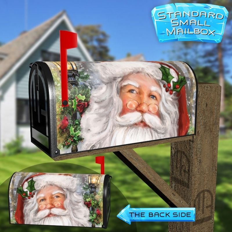 Dressing up your rural farm mailbox with the Beautiful Santa Claus Portrait mailbox cover is an easy way to convert it into a unique and special item. These covers require a smooth surface, so they are compatible with rural farm mailboxes that do not have any embossed decorations or signs. Magnetic mailbox covers work with steel boxes only, while self-adhesive vinyl covers are available for aluminum, plastic and steel boxes. If your mailbox is not compatible with these covers, you can purchase a brand new mailbox with a preinstalled cover. Additionally, you have the option to create a custom rural farm mailbox cover with your own pictures, name, street number, etc.