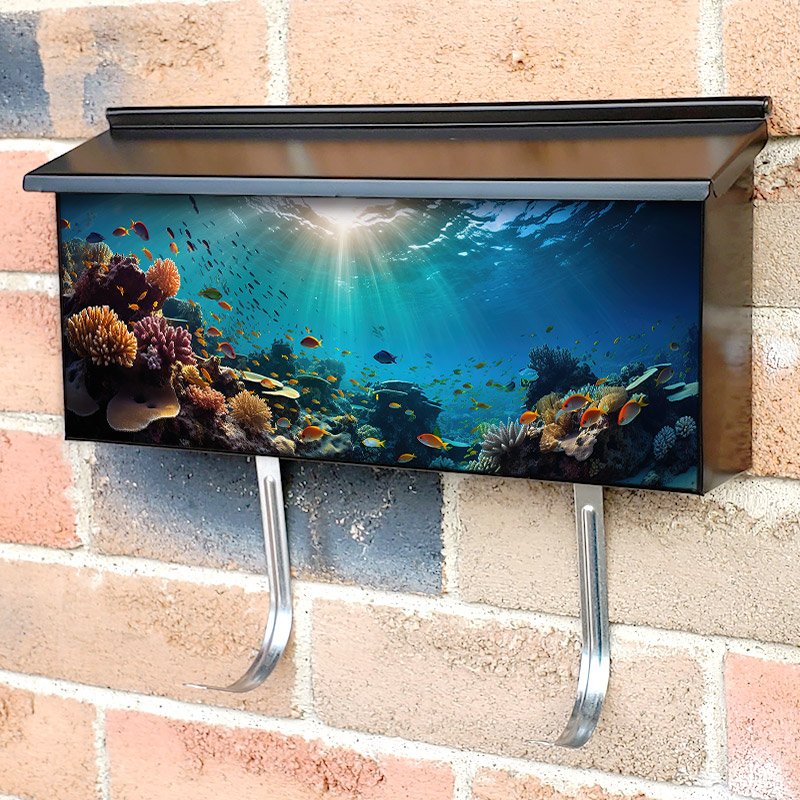 Applying your Beautiful Scenic Underwater View Sea Coral townhouse / ranch mailbox cover it’s pretty easy to convert your mailbox to a special and unique item. These covers require a flat surface, so they work with townhouse / ranch mailboxes that do not have any embossed decoration or signs. Magnetic mailbox covers work with steel boxes, for aluminum and plastic boxes we offer the self-adhesive vinyl covers. In case your mailbox doesn’t work with these covers, you can purchase the preinstalled cover on a brand new mailbox as well. Also, you can create your custom townhouse / ranch mailbox cover using you own pictures, adding your name, street number, etc.