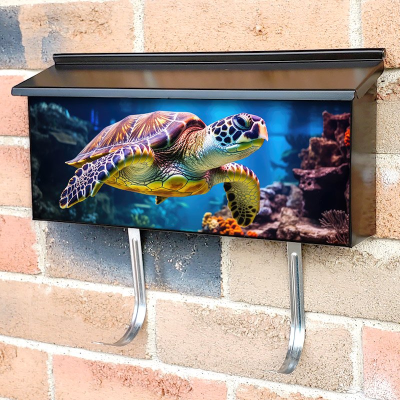 Beautiful Sea Turtle Around Beautiful Coral Reef Townhouse Mailbox Cover