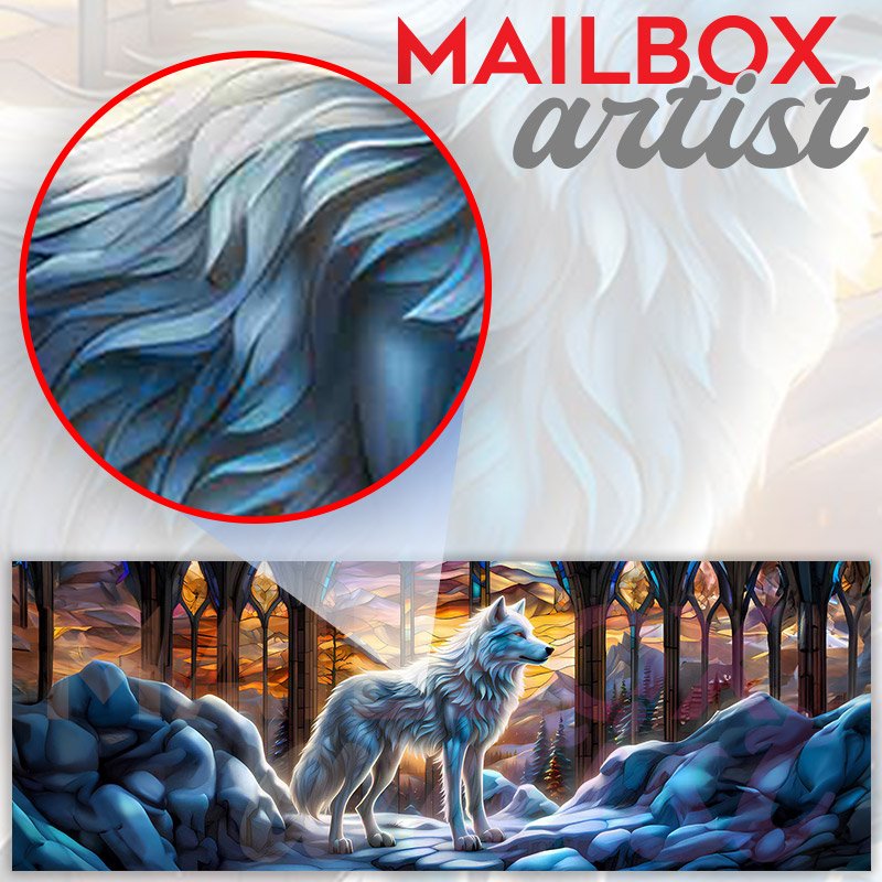 This Beautiful Stained Glass White Wolf mailbox design was created by Krisztina Soos