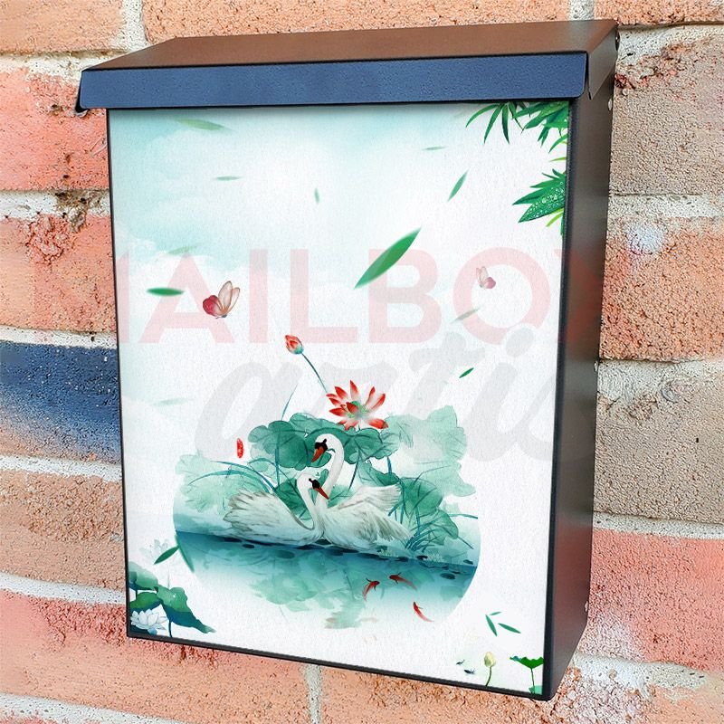 With this Beautiful Swan Couple colonial mailbox cover it’s pretty easy to convert your mailbox to a special and unique item. These covers require a flat surface, so they work with colonial mailboxes that do not have any embossed decoration or signs. Magnetic mailbox covers work with steel colonial boxes only, while self-adhesive vinyl covers are available for aluminum, plastic and steel boxes. We also offer both self-adhesive and magnetic covers with regular opaque white vinyl or reflective vinyl, which works similarly to license plates or road signs. The reflective option makes the entire cover’s surface reflective, ensuring visibility at night. In case your mailbox doesn’t work with these covers, you can purchase the preinstalled cover on a brand new mailbox as well. Also, you can create your custom colonial mailbox cover using you own pictures, adding your name, street number, etc.