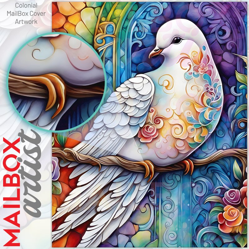 With this Beautiful White Dove 4 colonial mailbox cover it’s pretty easy to convert your mailbox to a special and unique item. These covers require a flat surface, so they work with colonial mailboxes that do not have any embossed decoration or signs. Magnetic mailbox covers work with steel colonial boxes only, while self-adhesive vinyl covers are available for aluminum, plastic and steel boxes. We also offer both self-adhesive and magnetic covers with regular opaque white vinyl or reflective vinyl, which works similarly to license plates or road signs. The reflective option makes the entire cover’s surface reflective, ensuring visibility at night. In case your mailbox doesn’t work with these covers, you can purchase the preinstalled cover on a brand new mailbox as well. Also, you can create your custom colonial mailbox cover using you own pictures, adding your name, street number, etc.
