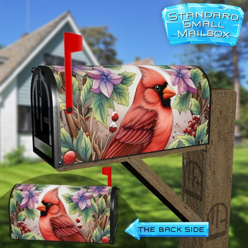 Dressing up your rural farm mailbox with the Beautiful Winter Cardinal mailbox cover is an easy way to convert it into a unique and special item. These covers require a smooth surface, so they are compatible with rural farm mailboxes that do not have any embossed decorations or signs. Magnetic mailbox covers work with steel boxes only, while self-adhesive vinyl covers are available for aluminum, plastic and steel boxes. If your mailbox is not compatible with these covers, you can purchase a brand new mailbox with a preinstalled cover. Additionally, you have the option to create a custom rural farm mailbox cover with your own pictures, name, street number, etc.