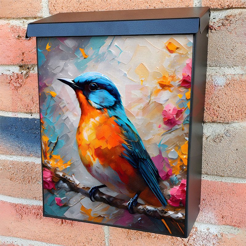 With this Bird on a Blooming Tree colonial mailbox cover it’s pretty easy to convert your mailbox to a special and unique item. These covers require a flat surface, so they work with colonial mailboxes that do not have any embossed decoration or signs. Magnetic mailbox covers work with steel colonial boxes only, while self-adhesive vinyl covers are available for aluminum, plastic and steel boxes. We also offer both self-adhesive and magnetic covers with regular opaque white vinyl or reflective vinyl, which works similarly to license plates or road signs. The reflective option makes the entire cover’s surface reflective, ensuring visibility at night. In case your mailbox doesn’t work with these covers, you can purchase the preinstalled cover on a brand new mailbox as well. Also, you can create your custom colonial mailbox cover using you own pictures, adding your name, street number, etc.