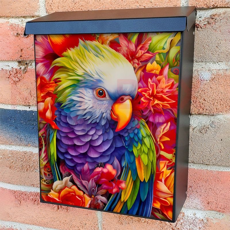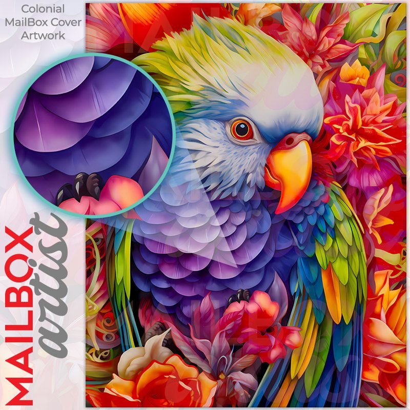 This Birds of Paradise – Colorful Parrot mailbox design was created by Krisztina Soos