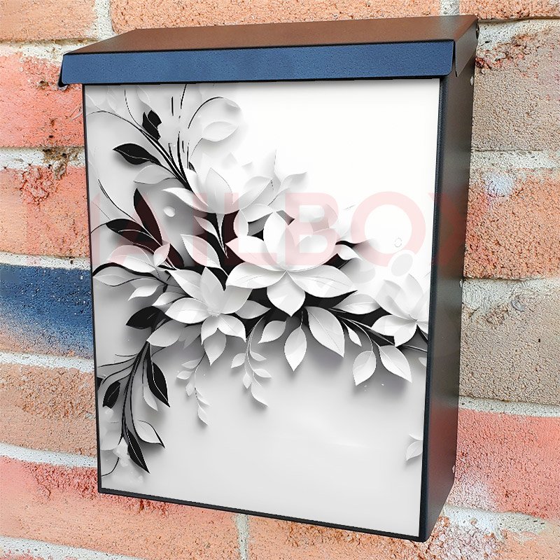 With this Black and White Leaves and Flowers colonial mailbox cover it’s pretty easy to convert your mailbox to a special and unique item. These covers require a flat surface, so they work with colonial mailboxes that do not have any embossed decoration or signs. Magnetic mailbox covers work with steel colonial boxes only, while self-adhesive vinyl covers are available for aluminum, plastic and steel boxes. We also offer both self-adhesive and magnetic covers with regular opaque white vinyl or reflective vinyl, which works similarly to license plates or road signs. The reflective option makes the entire cover’s surface reflective, ensuring visibility at night. In case your mailbox doesn’t work with these covers, you can purchase the preinstalled cover on a brand new mailbox as well. Also, you can create your custom colonial mailbox cover using you own pictures, adding your name, street number, etc.
