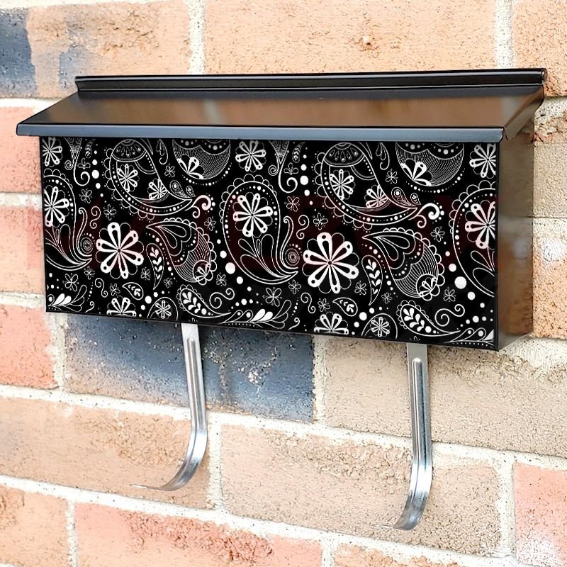 Applying your Black and White Paisley Design townhouse / ranch mailbox cover it’s pretty easy to convert your mailbox to a special and unique item. These covers require a flat surface, so they work with townhouse / ranch mailboxes that do not have any embossed decoration or signs. Magnetic mailbox covers work with steel boxes, for aluminum and plastic boxes we offer the self-adhesive vinyl covers. In case your mailbox doesn’t work with these covers, you can purchase the preinstalled cover on a brand new mailbox as well. Also, you can create your custom townhouse / ranch mailbox cover using you own pictures, adding your name, street number, etc.