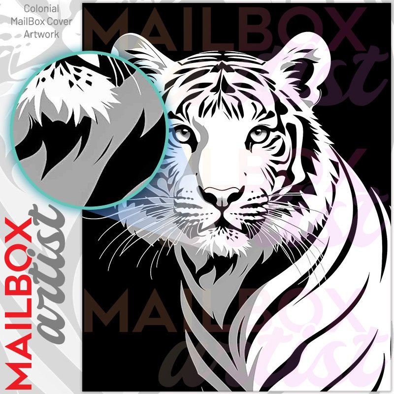 With this Black and White Tiger Portrait colonial mailbox cover it’s pretty easy to convert your mailbox to a special and unique item. These covers require a flat surface, so they work with colonial mailboxes that do not have any embossed decoration or signs. Magnetic mailbox covers work with steel colonial boxes only, while self-adhesive vinyl covers are available for aluminum, plastic and steel boxes. We also offer both self-adhesive and magnetic covers with regular opaque white vinyl or reflective vinyl, which works similarly to license plates or road signs. The reflective option makes the entire cover’s surface reflective, ensuring visibility at night. In case your mailbox doesn’t work with these covers, you can purchase the preinstalled cover on a brand new mailbox as well. Also, you can create your custom colonial mailbox cover using you own pictures, adding your name, street number, etc.