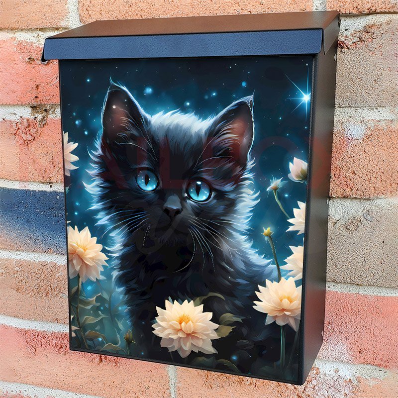 This Black Cat in the Night Garden mailbox design was created by Krisztina Soos
