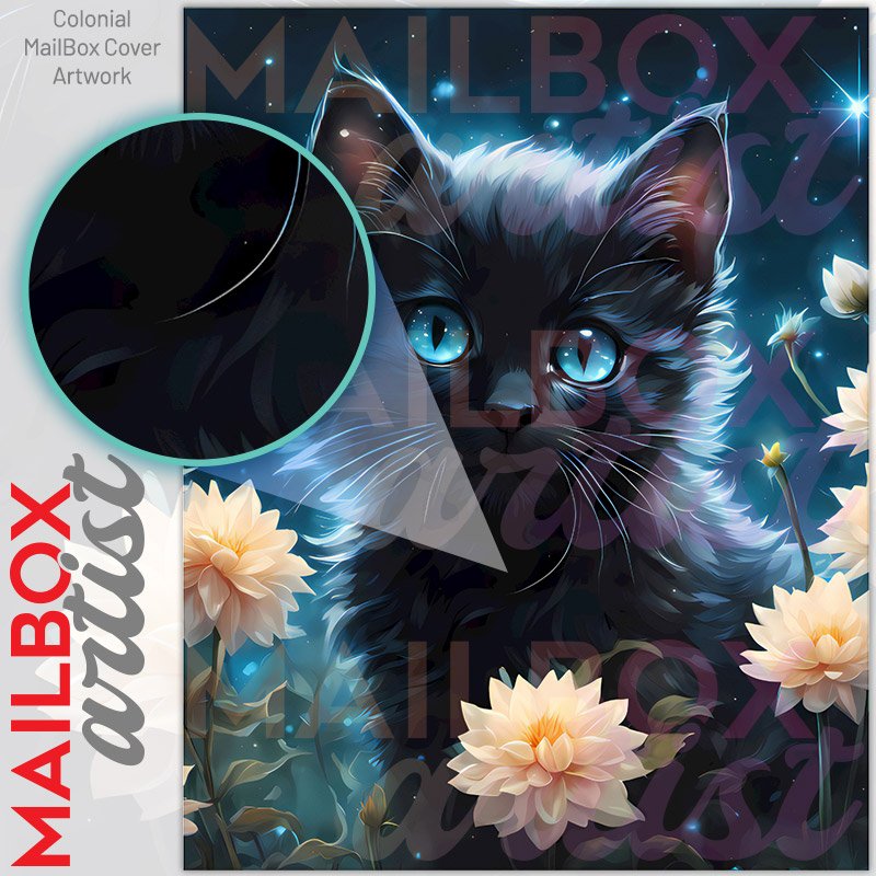 With this Black Cat in the Night Garden colonial mailbox cover it’s pretty easy to convert your mailbox to a special and unique item. These covers require a flat surface, so they work with colonial mailboxes that do not have any embossed decoration or signs. Magnetic mailbox covers work with steel colonial boxes only, while self-adhesive vinyl covers are available for aluminum, plastic and steel boxes. We also offer both self-adhesive and magnetic covers with regular opaque white vinyl or reflective vinyl, which works similarly to license plates or road signs. The reflective option makes the entire cover’s surface reflective, ensuring visibility at night. In case your mailbox doesn’t work with these covers, you can purchase the preinstalled cover on a brand new mailbox as well. Also, you can create your custom colonial mailbox cover using you own pictures, adding your name, street number, etc.