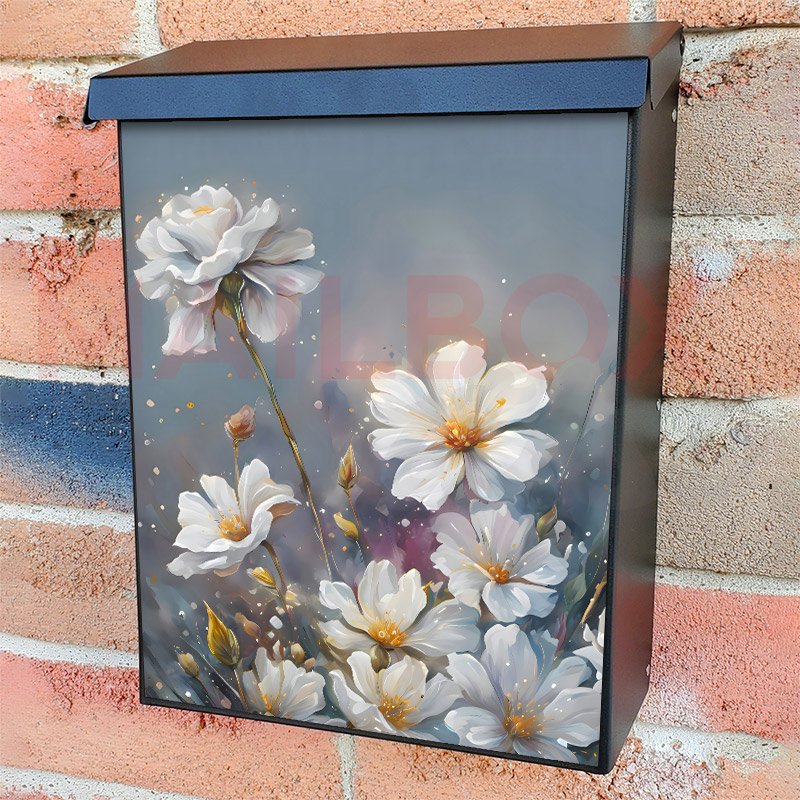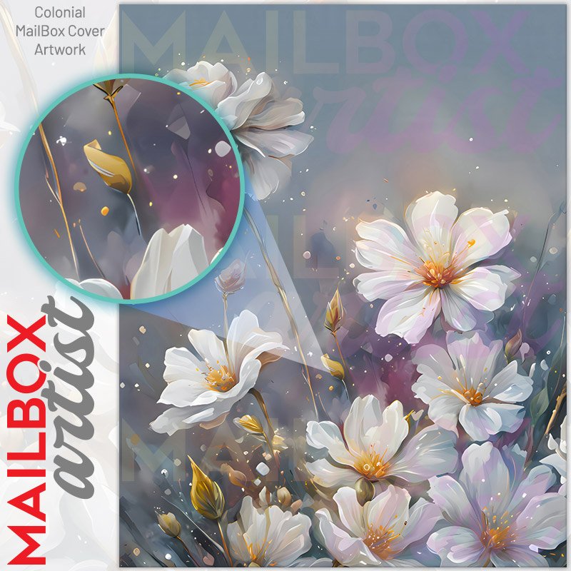 With this Blooming Little Blue Flowers colonial mailbox cover it’s pretty easy to convert your mailbox to a special and unique item. These covers require a flat surface, so they work with colonial mailboxes that do not have any embossed decoration or signs. Magnetic mailbox covers work with steel colonial boxes only, while self-adhesive vinyl covers are available for aluminum, plastic and steel boxes. We also offer both self-adhesive and magnetic covers with regular opaque white vinyl or reflective vinyl, which works similarly to license plates or road signs. The reflective option makes the entire cover’s surface reflective, ensuring visibility at night. In case your mailbox doesn’t work with these covers, you can purchase the preinstalled cover on a brand new mailbox as well. Also, you can create your custom colonial mailbox cover using you own pictures, adding your name, street number, etc.