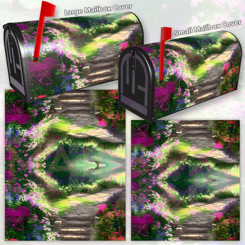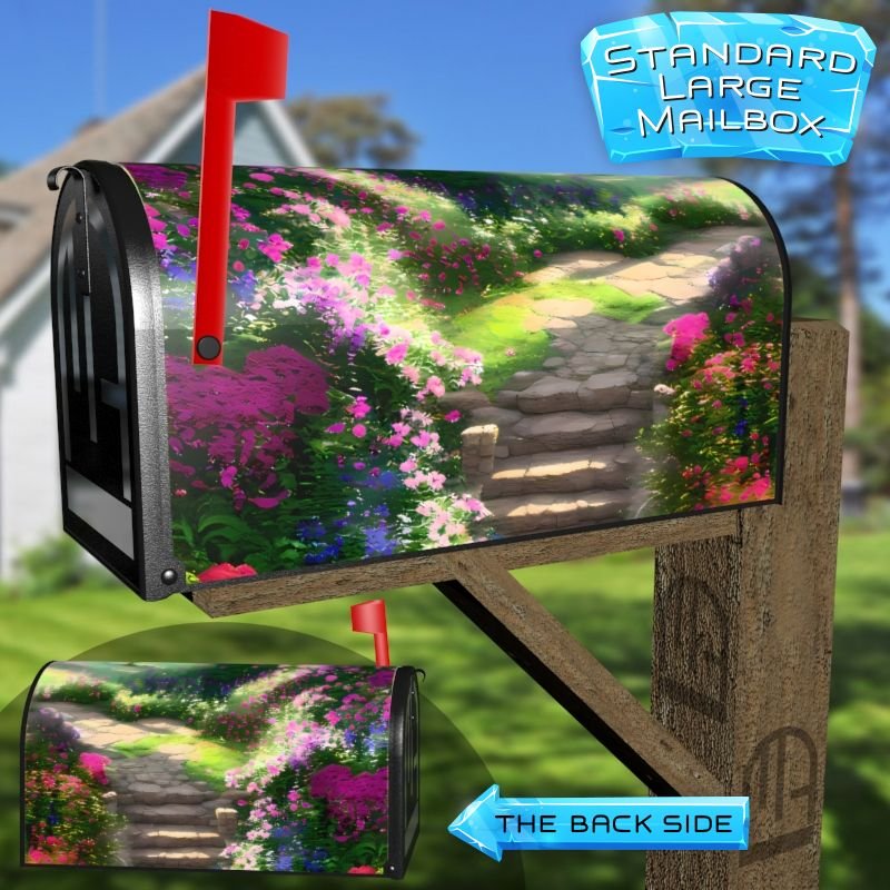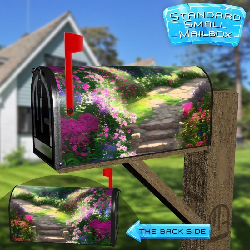 Dressing up your rural farm mailbox with the Blooming Summer Path mailbox cover is an easy way to convert it into a unique and special item. These covers require a smooth surface, so they are compatible with rural farm mailboxes that do not have any embossed decorations or signs. Magnetic mailbox covers work with steel boxes only, while self-adhesive vinyl covers are available for aluminum, plastic and steel boxes. If your mailbox is not compatible with these covers, you can purchase a brand new mailbox with a preinstalled cover. Additionally, you have the option to create a custom rural farm mailbox cover with your own pictures, name, street number, etc.