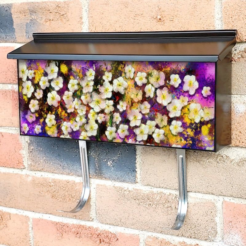 Applying your Blooming Tree with White Flowers townhouse / ranch mailbox cover it’s pretty easy to convert your mailbox to a special and unique item. These covers require a flat surface, so they work with townhouse / ranch mailboxes that do not have any embossed decoration or signs. Magnetic mailbox covers work with steel boxes, for aluminum and plastic boxes we offer the self-adhesive vinyl covers. In case your mailbox doesn’t work with these covers, you can purchase the preinstalled cover on a brand new mailbox as well. Also, you can create your custom townhouse / ranch mailbox cover using you own pictures, adding your name, street number, etc.