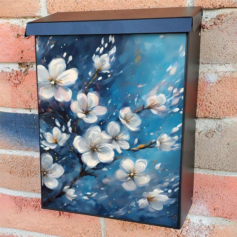 This Blooming White Blossoms mailbox design was created by Krisztina Soos