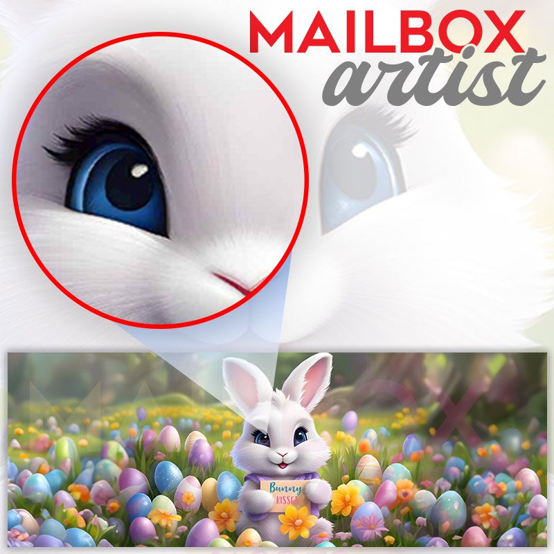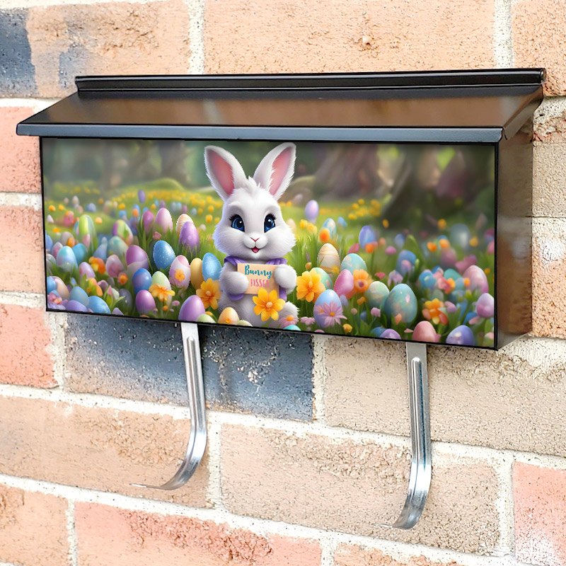 Applying your Blue Eyed Easter Bunny townhouse / ranch mailbox cover it’s pretty easy to convert your mailbox to a special and unique item. These covers require a flat surface, so they work with townhouse / ranch mailboxes that do not have any embossed decoration or signs. Magnetic mailbox covers work with steel boxes, for aluminum and plastic boxes we offer the self-adhesive vinyl covers. In case your mailbox doesn’t work with these covers, you can purchase the preinstalled cover on a brand new mailbox as well. Also, you can create your custom townhouse / ranch mailbox cover using you own pictures, adding your name, street number, etc.