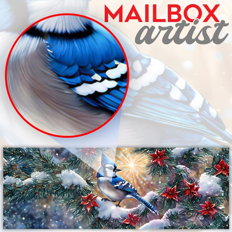 This Blue Jay on a Snowy Pine Tree mailbox design was created by Krisztina Soos