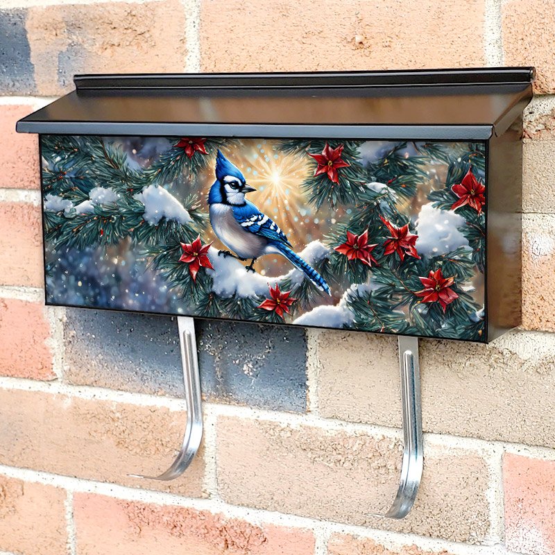 Applying your Blue Jay on a Snowy Pine Tree townhouse / ranch mailbox cover it’s pretty easy to convert your mailbox to a special and unique item. These covers require a flat surface, so they work with townhouse / ranch mailboxes that do not have any embossed decoration or signs. Magnetic mailbox covers work with steel boxes, for aluminum and plastic boxes we offer the self-adhesive vinyl covers. In case your mailbox doesn’t work with these covers, you can purchase the preinstalled cover on a brand new mailbox as well. Also, you can create your custom townhouse / ranch mailbox cover using you own pictures, adding your name, street number, etc.