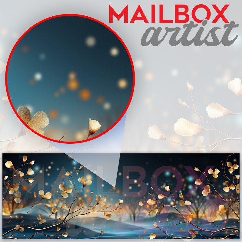 Applying your Blurred Branches And Flowers townhouse / ranch mailbox cover it’s pretty easy to convert your mailbox to a special and unique item. These covers require a flat surface, so they work with townhouse / ranch mailboxes that do not have any embossed decoration or signs. Magnetic mailbox covers work with steel boxes, for aluminum and plastic boxes we offer the self-adhesive vinyl covers. In case your mailbox doesn’t work with these covers, you can purchase the preinstalled cover on a brand new mailbox as well. Also, you can create your custom townhouse / ranch mailbox cover using you own pictures, adding your name, street number, etc.
