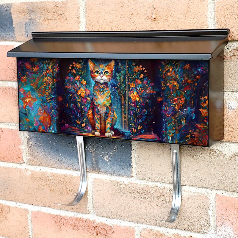 Applying your Bohemian Cat with Flowers townhouse / ranch mailbox cover it’s pretty easy to convert your mailbox to a special and unique item. These covers require a flat surface, so they work with townhouse / ranch mailboxes that do not have any embossed decoration or signs. Magnetic mailbox covers work with steel boxes, for aluminum and plastic boxes we offer the self-adhesive vinyl covers. In case your mailbox doesn’t work with these covers, you can purchase the preinstalled cover on a brand new mailbox as well. Also, you can create your custom townhouse / ranch mailbox cover using you own pictures, adding your name, street number, etc.