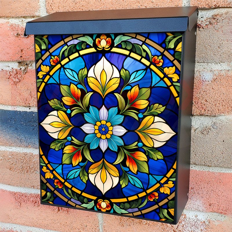 With this Bohemian Flower Mandala colonial mailbox cover it’s pretty easy to convert your mailbox to a special and unique item. These covers require a flat surface, so they work with colonial mailboxes that do not have any embossed decoration or signs. Magnetic mailbox covers work with steel colonial boxes only, while self-adhesive vinyl covers are available for aluminum, plastic and steel boxes. We also offer both self-adhesive and magnetic covers with regular opaque white vinyl or reflective vinyl, which works similarly to license plates or road signs. The reflective option makes the entire cover’s surface reflective, ensuring visibility at night. In case your mailbox doesn’t work with these covers, you can purchase the preinstalled cover on a brand new mailbox as well. Also, you can create your custom colonial mailbox cover using you own pictures, adding your name, street number, etc.
