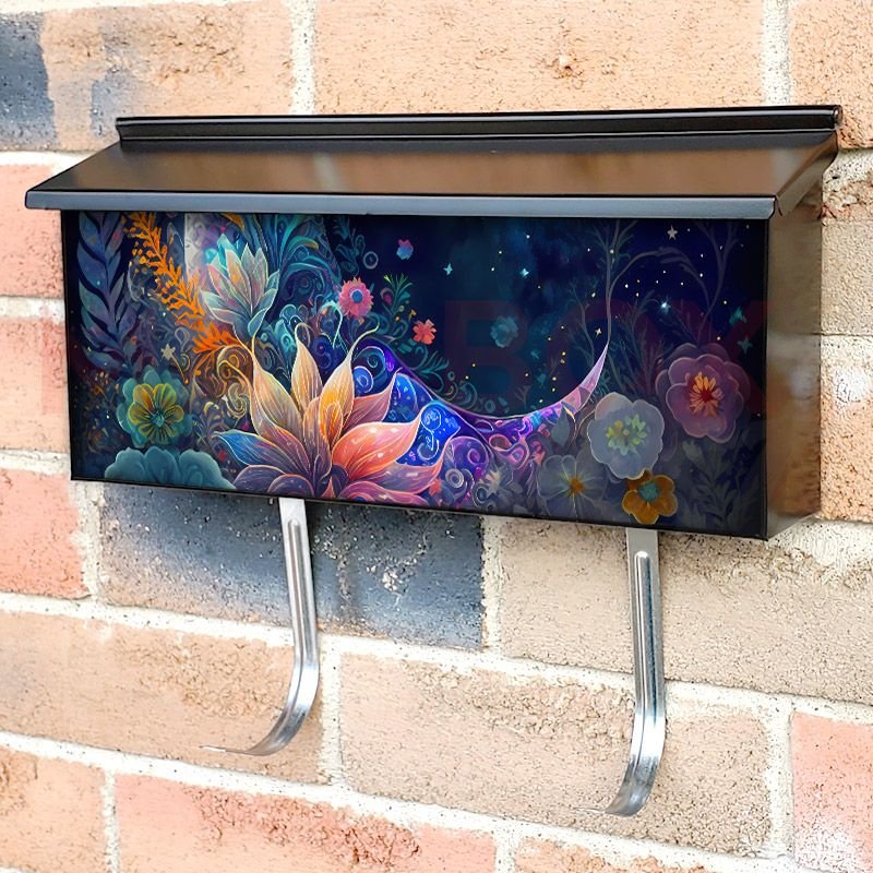 Applying your Bohemian Flower Moon #7 townhouse / ranch mailbox cover it’s pretty easy to convert your mailbox to a special and unique item. These covers require a flat surface, so they work with townhouse / ranch mailboxes that do not have any embossed decoration or signs. Magnetic mailbox covers work with steel boxes, for aluminum and plastic boxes we offer the self-adhesive vinyl covers. In case your mailbox doesn’t work with these covers, you can purchase the preinstalled cover on a brand new mailbox as well. Also, you can create your custom townhouse / ranch mailbox cover using you own pictures, adding your name, street number, etc.