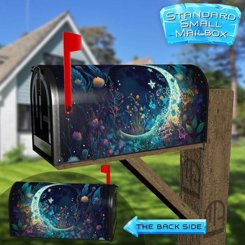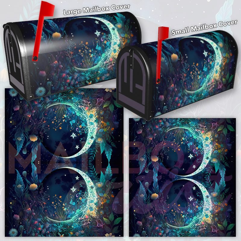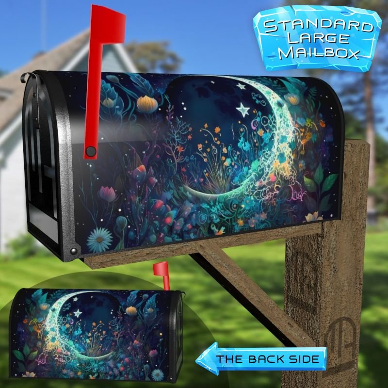 Dressing up your rural farm mailbox with the Bohemian Flower Moon #8 mailbox cover is an easy way to convert it into a unique and special item. These covers require a smooth surface, so they are compatible with rural farm mailboxes that do not have any embossed decorations or signs. Magnetic mailbox covers work with steel boxes only, while self-adhesive vinyl covers are available for aluminum, plastic and steel boxes. If your mailbox is not compatible with these covers, you can purchase a brand new mailbox with a preinstalled cover. Additionally, you have the option to create a custom rural farm mailbox cover with your own pictures, name, street number, etc.