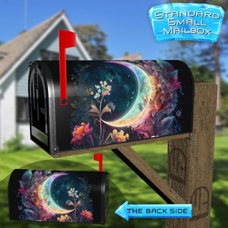Dressing up your rural farm mailbox with the Bohemian Flower Moon #9 mailbox cover is an easy way to convert it into a unique and special item. These covers require a smooth surface, so they are compatible with rural farm mailboxes that do not have any embossed decorations or signs. Magnetic mailbox covers work with steel boxes only, while self-adhesive vinyl covers are available for aluminum, plastic and steel boxes. If your mailbox is not compatible with these covers, you can purchase a brand new mailbox with a preinstalled cover. Additionally, you have the option to create a custom rural farm mailbox cover with your own pictures, name, street number, etc.