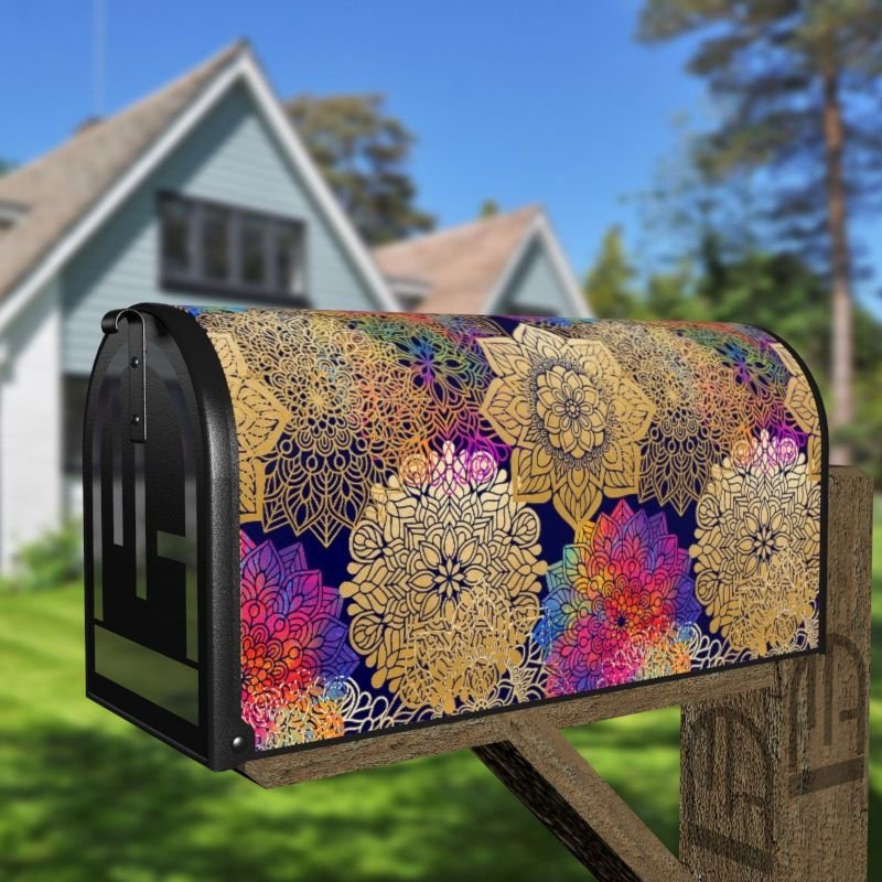 Grab this creative Bohemian Folk Art Ethnic Mandala Design #4 rural/curbside/farm mailbox cover as self adhesive vinyl or magnetic cover. Our magnetic covers have the magnetic surface under the whole design, not only two magnet strips like in cheaper products. We also offer both the self adhesive and the magnetic covers with regular opaque white vinyl or reflective vinyl which works the same way as the licence plates or road signs; pretty visible at night. We make these covers for both large and small mailboxes.