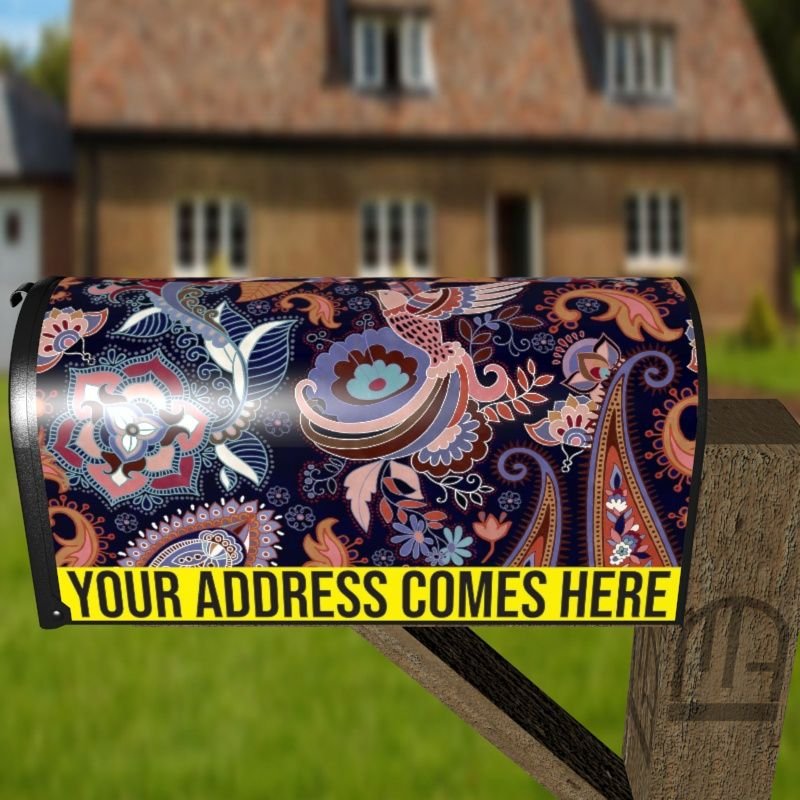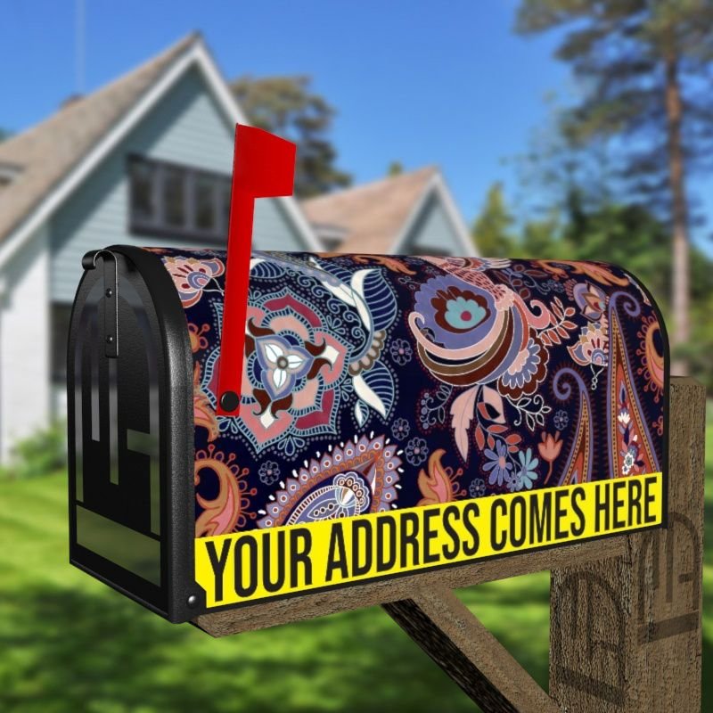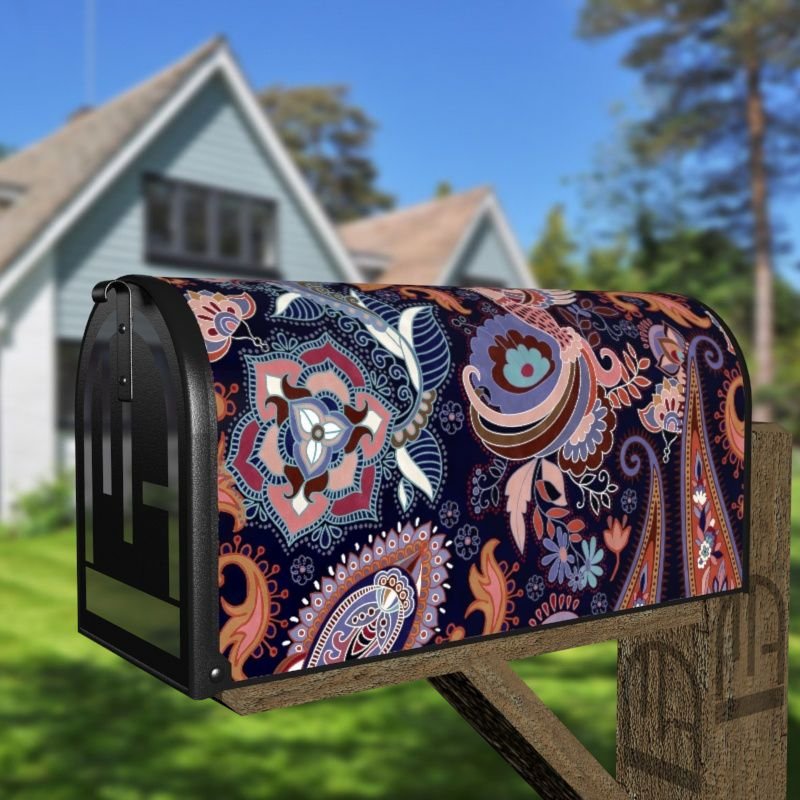 Grab this creative Bohemian Folk Art Ethnic Paisley Design #14 rural/curbside/farm mailbox cover as self adhesive vinyl or magnetic cover. Our magnetic covers have the magnetic surface under the whole design, not only two magnet strips like in cheaper products. We also offer both the self adhesive and the magnetic covers with regular opaque white vinyl or reflective vinyl which works the same way as the licence plates or road signs; pretty visible at night. We make these covers for both large and small mailboxes.