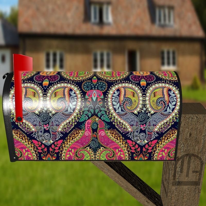 Bohemian Folk Art Ethnic Paisley Design #4 Decorative Curbside Farm Mailbox Cover