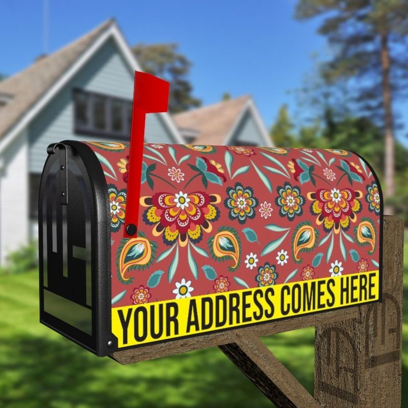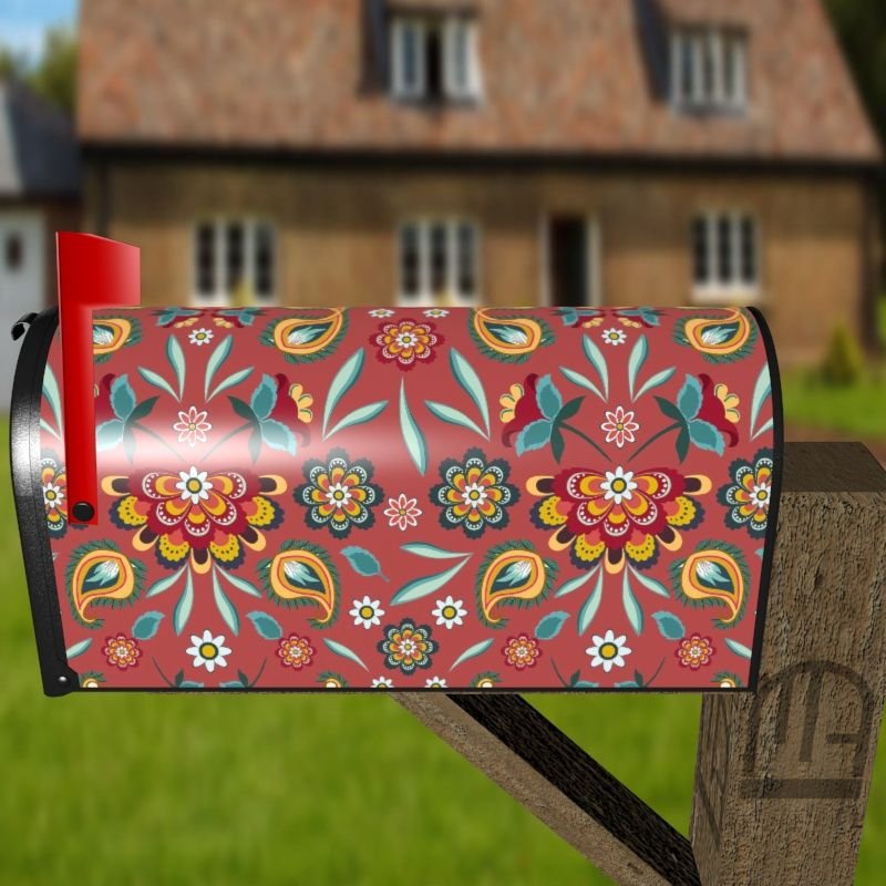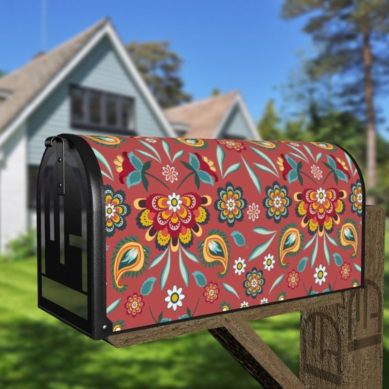 Bohemian Folk Batik Ethnic Flowers #4 Decorative Curbside Farm Mailbox Cover