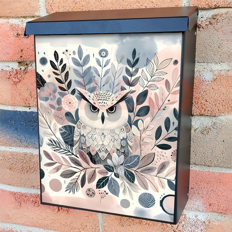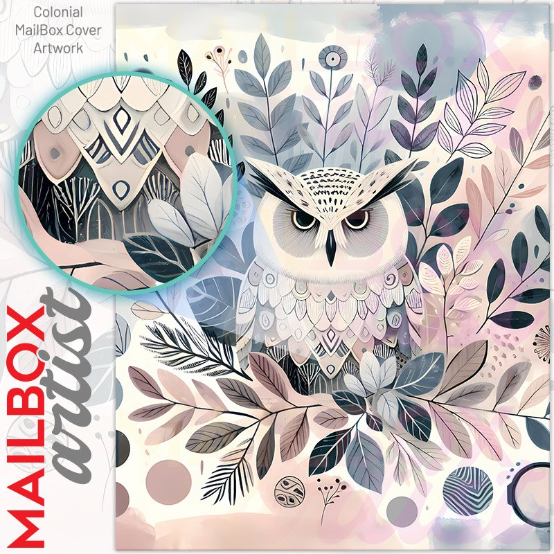 With this Bohemian Owl and Flowers colonial mailbox cover it’s pretty easy to convert your mailbox to a special and unique item. These covers require a flat surface, so they work with colonial mailboxes that do not have any embossed decoration or signs. Magnetic mailbox covers work with steel colonial boxes only, while self-adhesive vinyl covers are available for aluminum, plastic and steel boxes. We also offer both self-adhesive and magnetic covers with regular opaque white vinyl or reflective vinyl, which works similarly to license plates or road signs. The reflective option makes the entire cover’s surface reflective, ensuring visibility at night. In case your mailbox doesn’t work with these covers, you can purchase the preinstalled cover on a brand new mailbox as well. Also, you can create your custom colonial mailbox cover using you own pictures, adding your name, street number, etc.