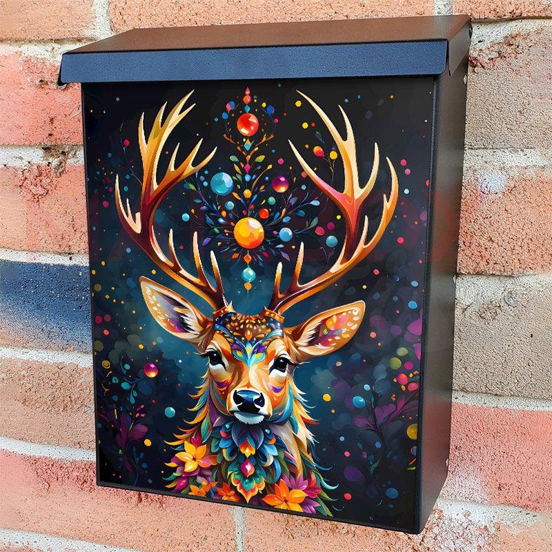 This Bohemian Twilight Deer mailbox design was created by Krisztina Soos