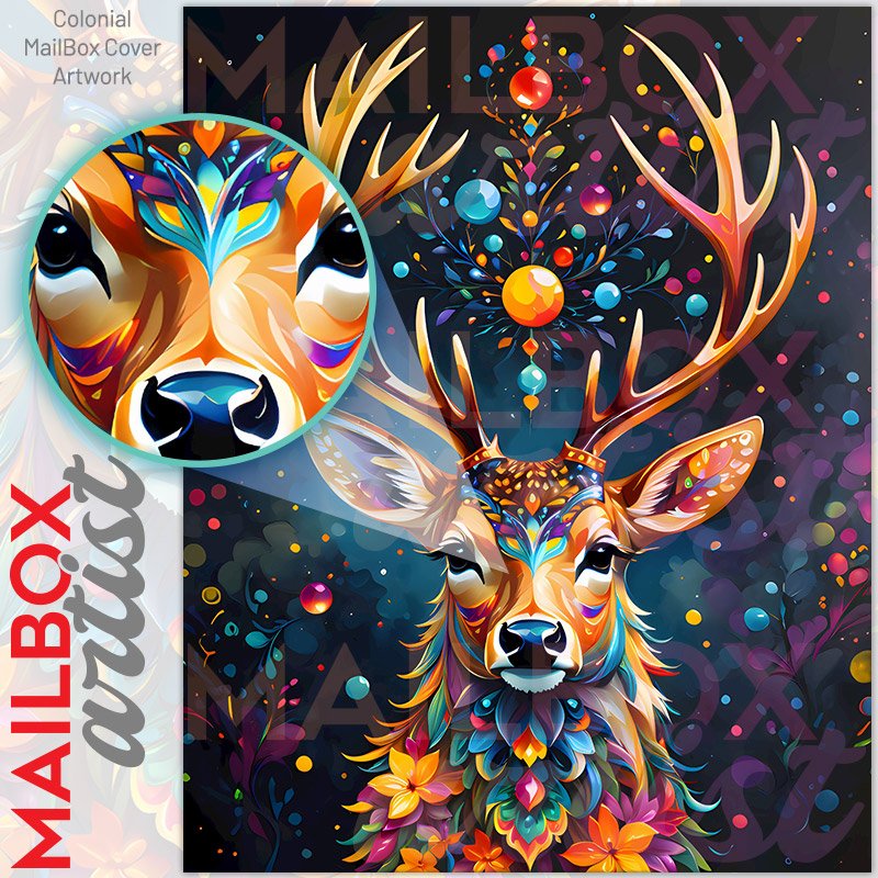 With this Bohemian Twilight Deer colonial mailbox cover it’s pretty easy to convert your mailbox to a special and unique item. These covers require a flat surface, so they work with colonial mailboxes that do not have any embossed decoration or signs. Magnetic mailbox covers work with steel colonial boxes only, while self-adhesive vinyl covers are available for aluminum, plastic and steel boxes. We also offer both self-adhesive and magnetic covers with regular opaque white vinyl or reflective vinyl, which works similarly to license plates or road signs. The reflective option makes the entire cover’s surface reflective, ensuring visibility at night. In case your mailbox doesn’t work with these covers, you can purchase the preinstalled cover on a brand new mailbox as well. Also, you can create your custom colonial mailbox cover using you own pictures, adding your name, street number, etc.