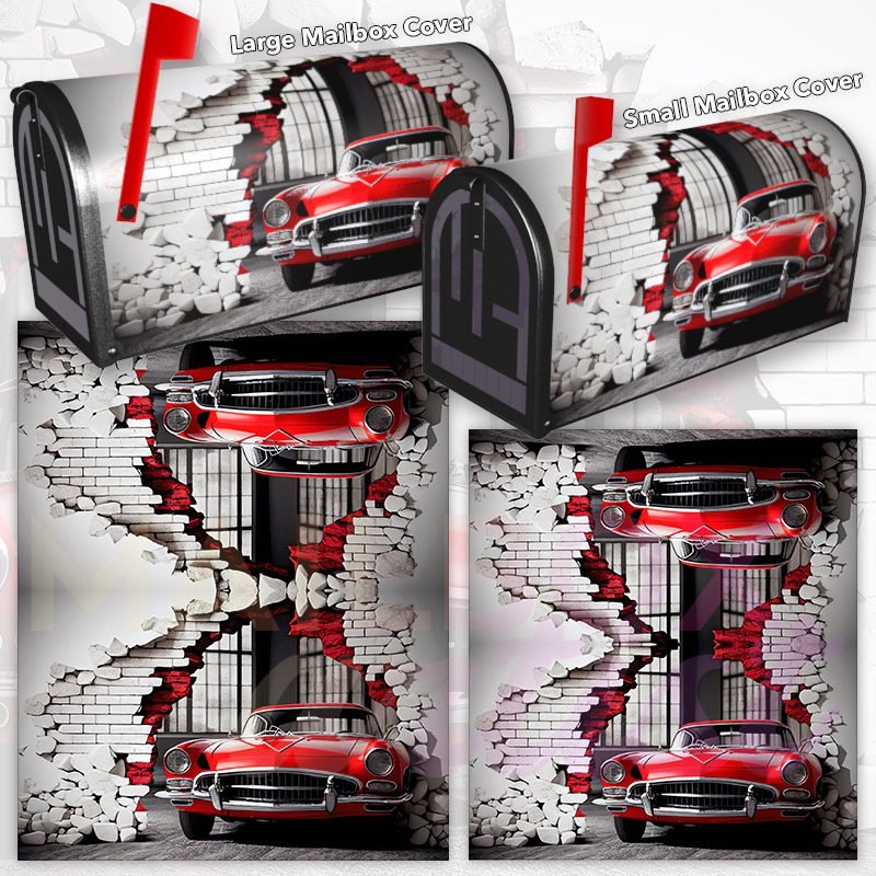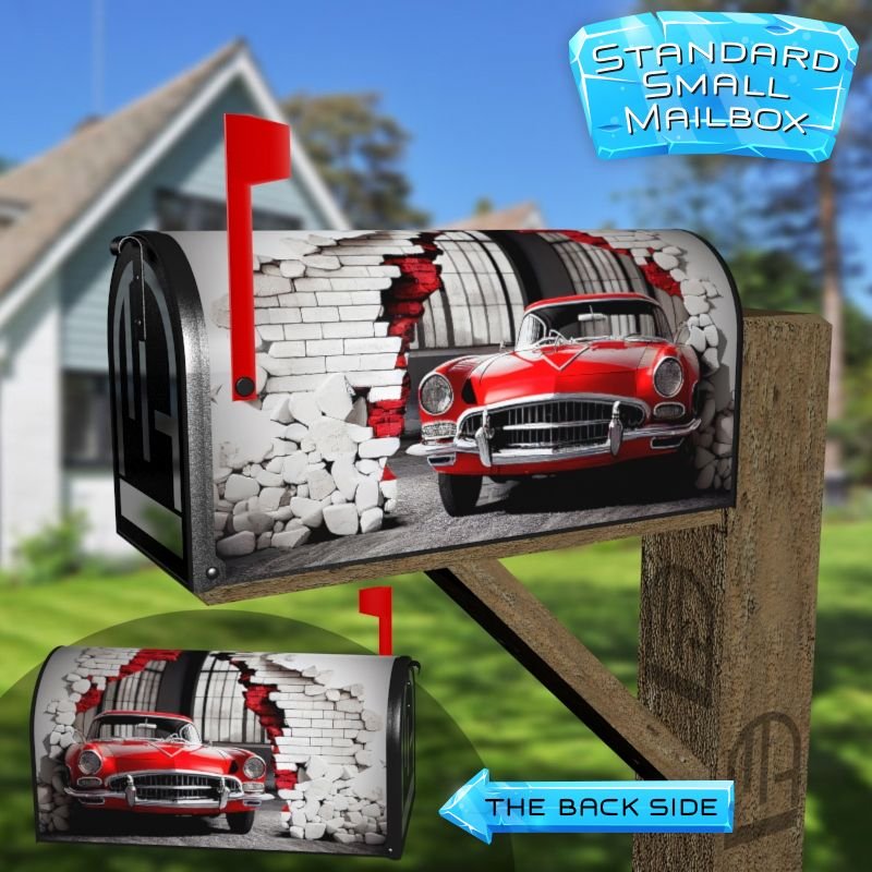 Dressing up your rural farm mailbox with the Broken Wall Bricks And A Classic Red Car 7 mailbox cover is an easy way to convert it into a unique and special item. These covers require a smooth surface, so they are compatible with rural farm mailboxes that do not have any embossed decorations or signs. Magnetic mailbox covers work with steel boxes only, while self-adhesive vinyl covers are available for aluminum, plastic and steel boxes. If your mailbox is not compatible with these covers, you can purchase a brand new mailbox with a preinstalled cover. Additionally, you have the option to create a custom rural farm mailbox cover with your own pictures, name, street number, etc.