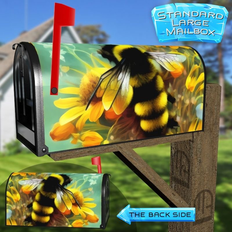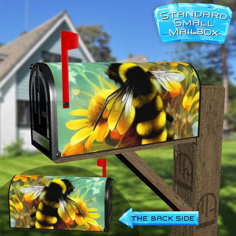 Dressing up your rural farm mailbox with the Bumblebee on the Flowers mailbox cover is an easy way to convert it into a unique and special item. These covers require a smooth surface, so they are compatible with rural farm mailboxes that do not have any embossed decorations or signs. Magnetic mailbox covers work with steel boxes only, while self-adhesive vinyl covers are available for aluminum, plastic and steel boxes. If your mailbox is not compatible with these covers, you can purchase a brand new mailbox with a preinstalled cover. Additionally, you have the option to create a custom rural farm mailbox cover with your own pictures, name, street number, etc.