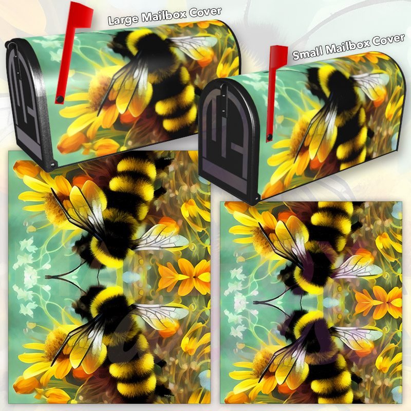 Bumblebee on the Flowers Decorative Rural Farm Mailbox Cover