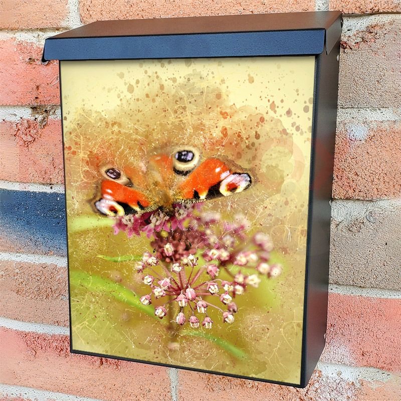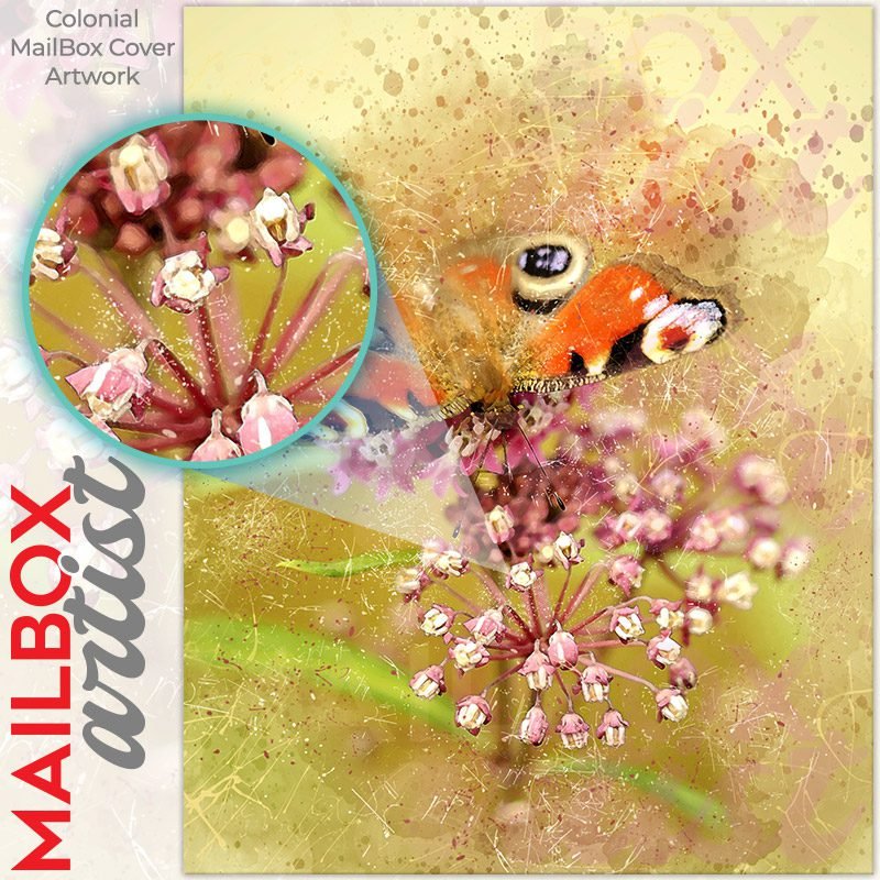 With this Butterfly on the Flower colonial mailbox cover it’s pretty easy to convert your mailbox to a special and unique item. These covers require a flat surface, so they work with colonial mailboxes that do not have any embossed decoration or signs. Magnetic mailbox covers work with steel colonial boxes only, while self-adhesive vinyl covers are available for aluminum, plastic and steel boxes. We also offer both self-adhesive and magnetic covers with regular opaque white vinyl or reflective vinyl, which works similarly to license plates or road signs. The reflective option makes the entire cover’s surface reflective, ensuring visibility at night. In case your mailbox doesn’t work with these covers, you can purchase the preinstalled cover on a brand new mailbox as well. Also, you can create your custom colonial mailbox cover using you own pictures, adding your name, street number, etc.