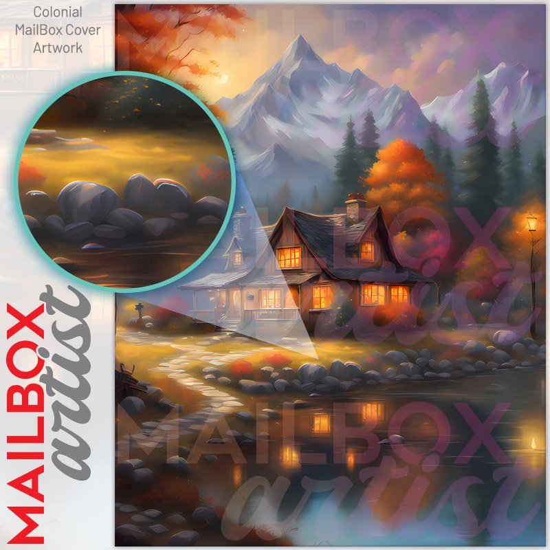 With this Cabin in the Autumn Woods colonial mailbox cover it’s pretty easy to convert your mailbox to a special and unique item. These covers require a flat surface, so they work with colonial mailboxes that do not have any embossed decoration or signs. Magnetic mailbox covers work with steel colonial boxes only, while self-adhesive vinyl covers are available for aluminum, plastic and steel boxes. We also offer both self-adhesive and magnetic covers with regular opaque white vinyl or reflective vinyl, which works similarly to license plates or road signs. The reflective option makes the entire cover’s surface reflective, ensuring visibility at night. In case your mailbox doesn’t work with these covers, you can purchase the preinstalled cover on a brand new mailbox as well. Also, you can create your custom colonial mailbox cover using you own pictures, adding your name, street number, etc.