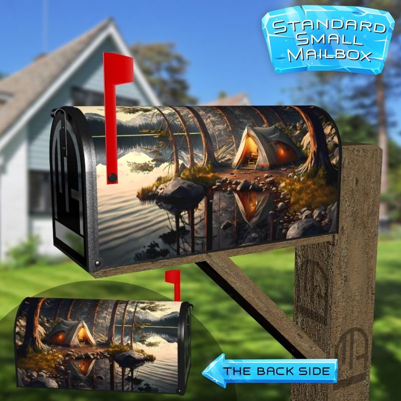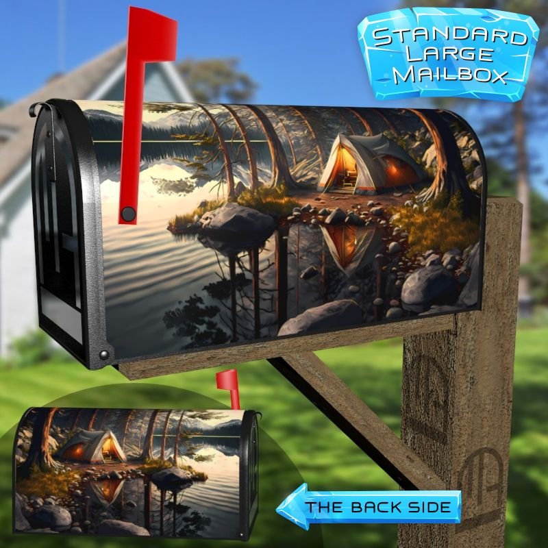 Dressing up your rural farm mailbox with the Camping at the Lake mailbox cover is an easy way to convert it into a unique and special item. These covers require a smooth surface, so they are compatible with rural farm mailboxes that do not have any embossed decorations or signs. Magnetic mailbox covers work with steel boxes only, while self-adhesive vinyl covers are available for aluminum, plastic and steel boxes. If your mailbox is not compatible with these covers, you can purchase a brand new mailbox with a preinstalled cover. Additionally, you have the option to create a custom rural farm mailbox cover with your own pictures, name, street number, etc.