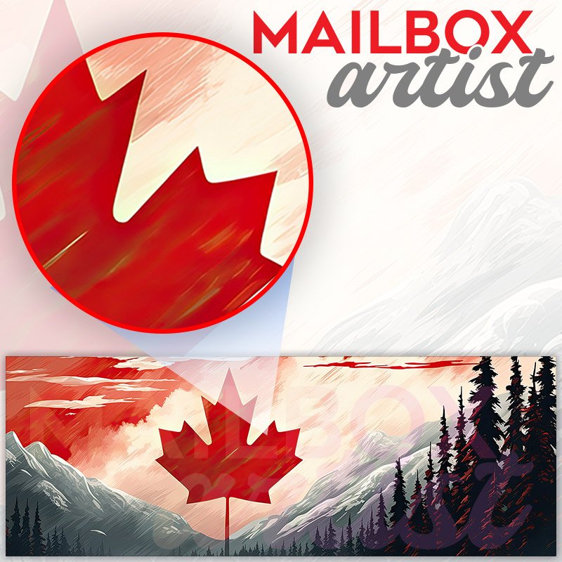 Applying your Canadian Maple Leaf On A Lake In The Mountains townhouse / ranch mailbox cover it’s pretty easy to convert your mailbox to a special and unique item. These covers require a flat surface, so they work with townhouse / ranch mailboxes that do not have any embossed decoration or signs. Magnetic mailbox covers work with steel boxes, for aluminum and plastic boxes we offer the self-adhesive vinyl covers. In case your mailbox doesn’t work with these covers, you can purchase the preinstalled cover on a brand new mailbox as well. Also, you can create your custom townhouse / ranch mailbox cover using you own pictures, adding your name, street number, etc.