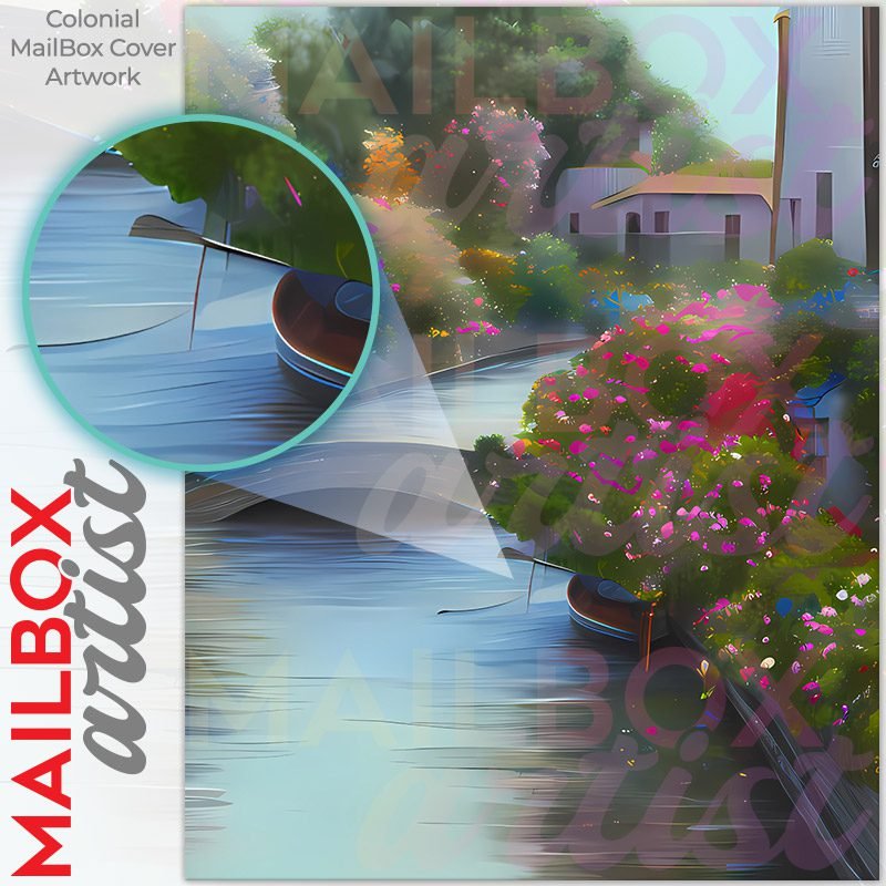 With this Canal in the Village colonial mailbox cover it’s pretty easy to convert your mailbox to a special and unique item. These covers require a flat surface, so they work with colonial mailboxes that do not have any embossed decoration or signs. Magnetic mailbox covers work with steel colonial boxes only, while self-adhesive vinyl covers are available for aluminum, plastic and steel boxes. We also offer both self-adhesive and magnetic covers with regular opaque white vinyl or reflective vinyl, which works similarly to license plates or road signs. The reflective option makes the entire cover’s surface reflective, ensuring visibility at night. In case your mailbox doesn’t work with these covers, you can purchase the preinstalled cover on a brand new mailbox as well. Also, you can create your custom colonial mailbox cover using you own pictures, adding your name, street number, etc.