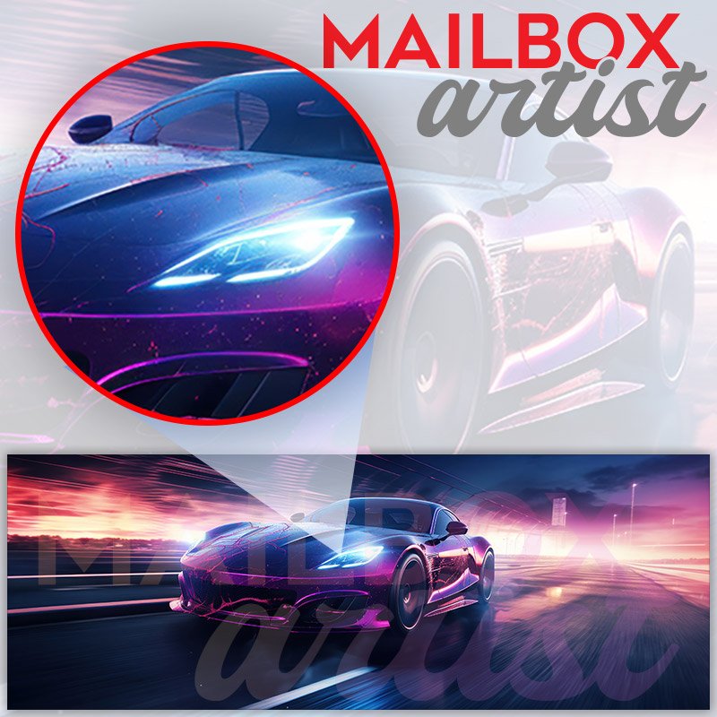 This Car Moving On A Highway In Motion At Night In Neon Lights mailbox design was created by Krisztina Soos
